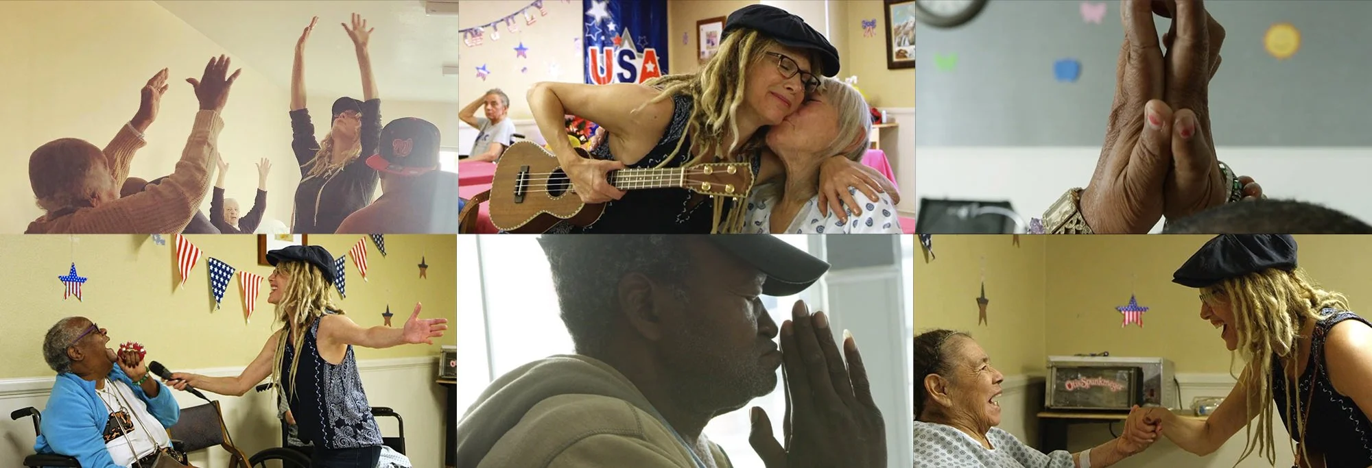 Live music is chosen that the specific population can relate to and enjoy. It focuses on creating sing-alongs as well as dancing (even in a chair) to stimulate group participation. It is not mere entertainment but highly spirited interactive engagement. A party type atmosphere is created opening hearts and allowing the music to put everyone at ease and on the same emotional plane. The intention is to elevate the collective energy the room. We believe this transformation is key to healing and wellness. Once this feeling of ease and joy is created we can move into the second segment which is Meditation.